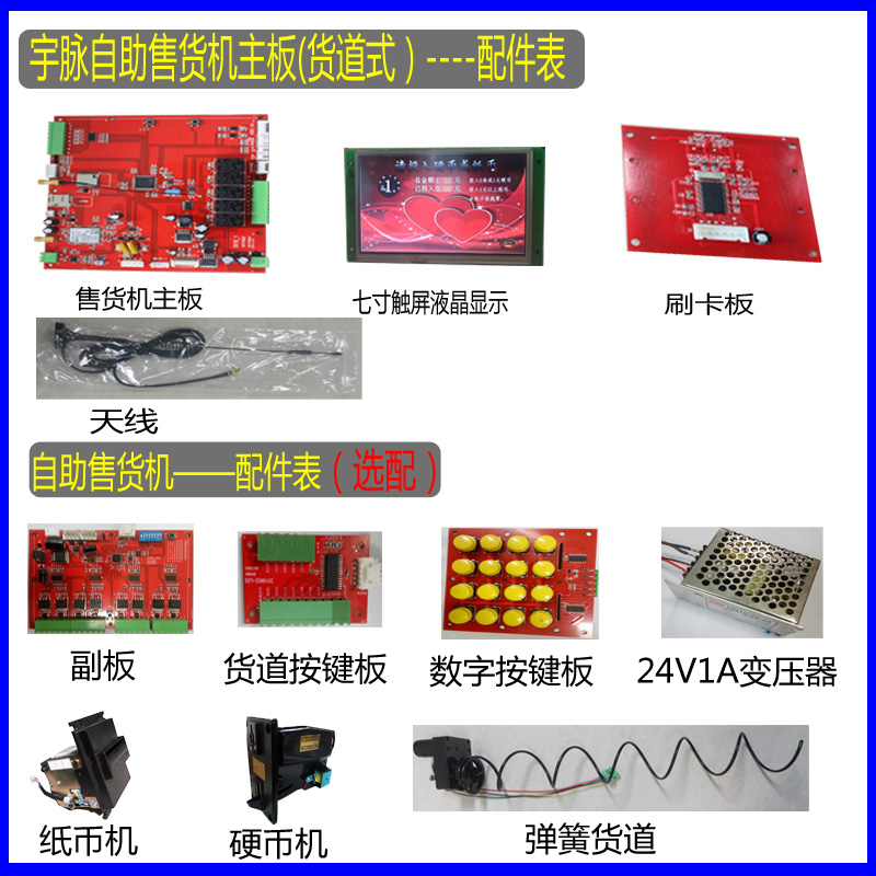 最大特点:货道式自助售货机,支持8个轨道,32个副板(一个主板支持5个副板)。联网管理(网页版支持手机/电脑登录)设备远程控制、短信报账、故障报警、语音播报、远程后台设置、充值、挂失、分类管理、查询年月日报表、一键导航、商城等。