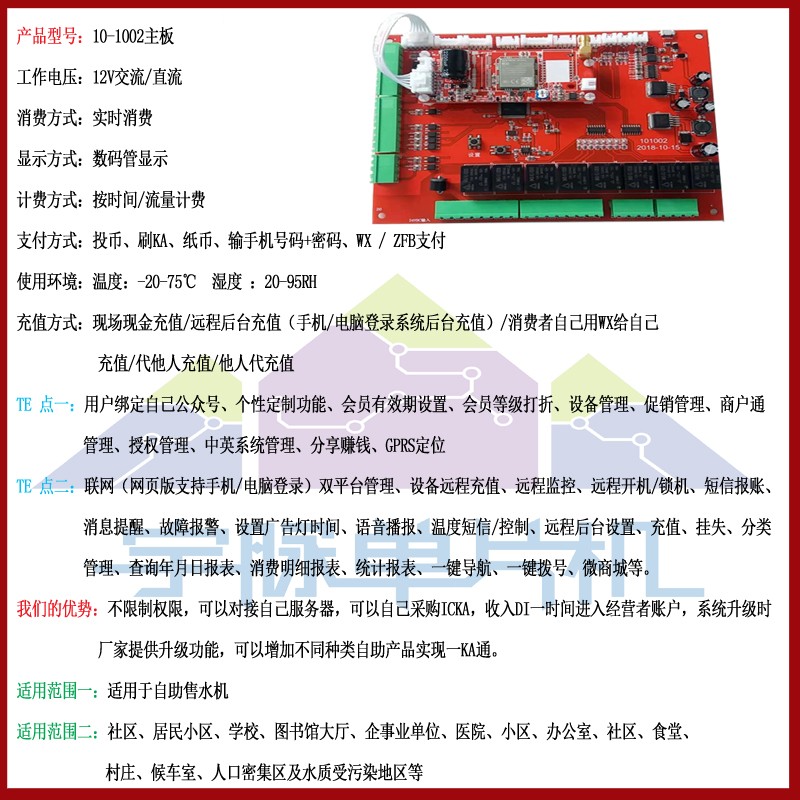 宇脉自助售水机主板厂家 ,自主研发售水机控制板,多功能定制 。
