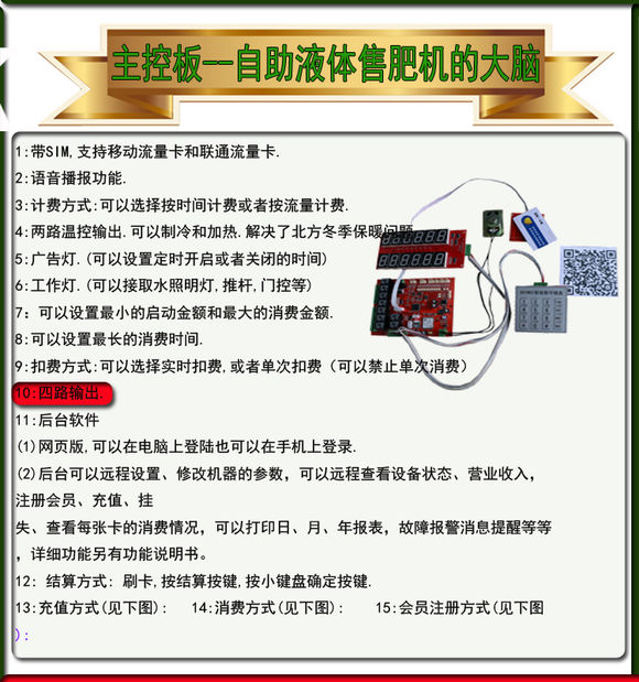 广州宇脉自助液体售肥机自主研发软件主控主板厂家